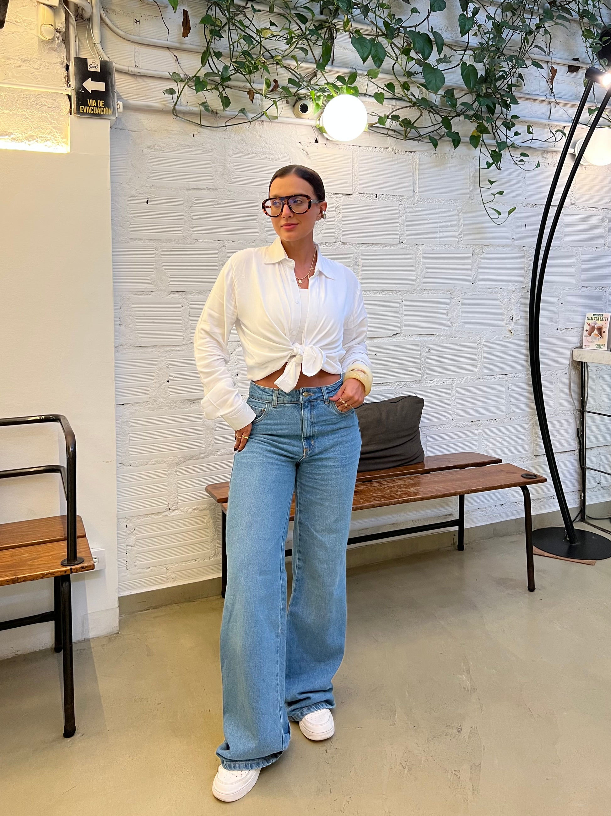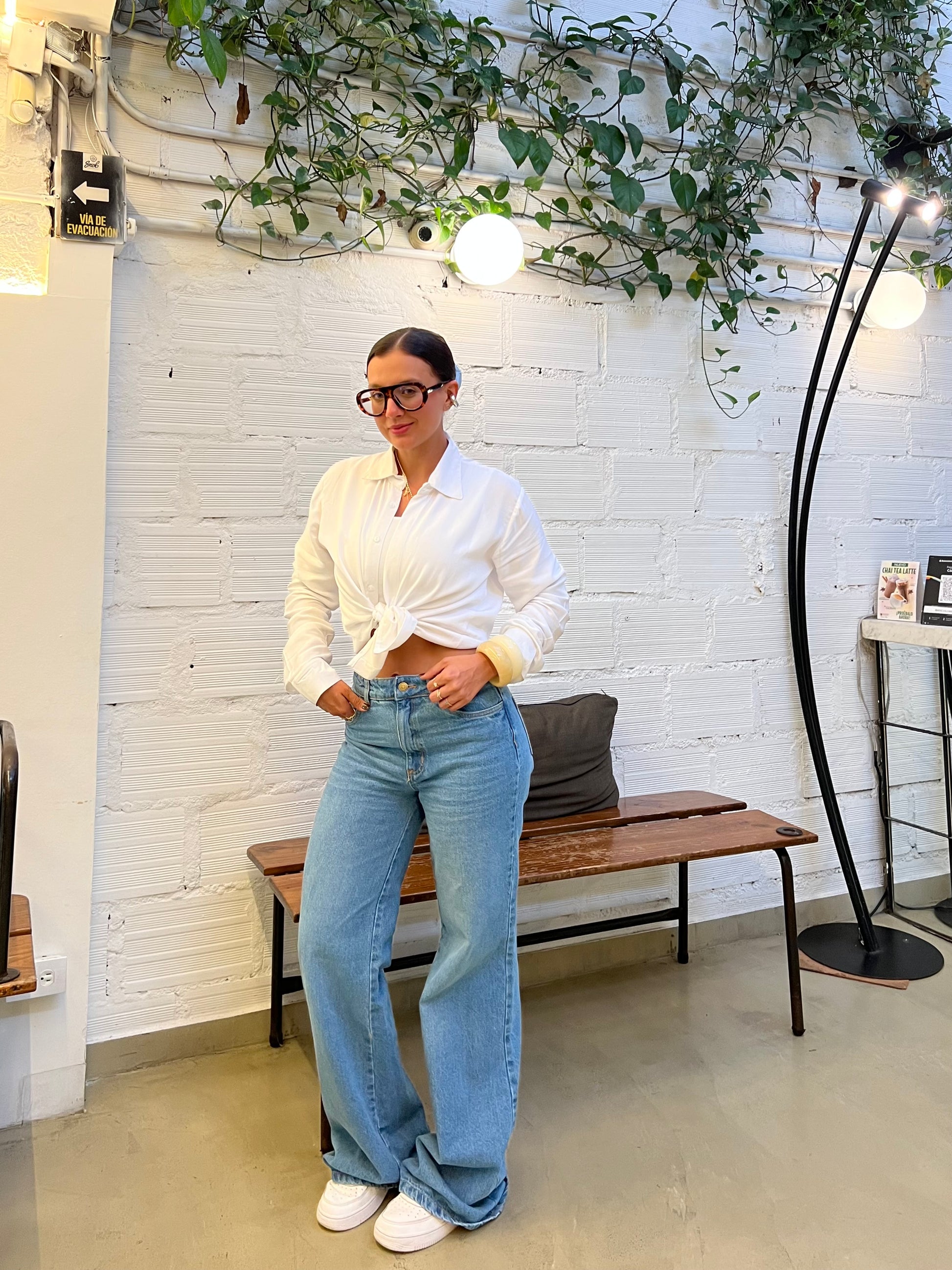 Camisera blanca confeccionada en una tela ligera con estructura suave y caída natural.